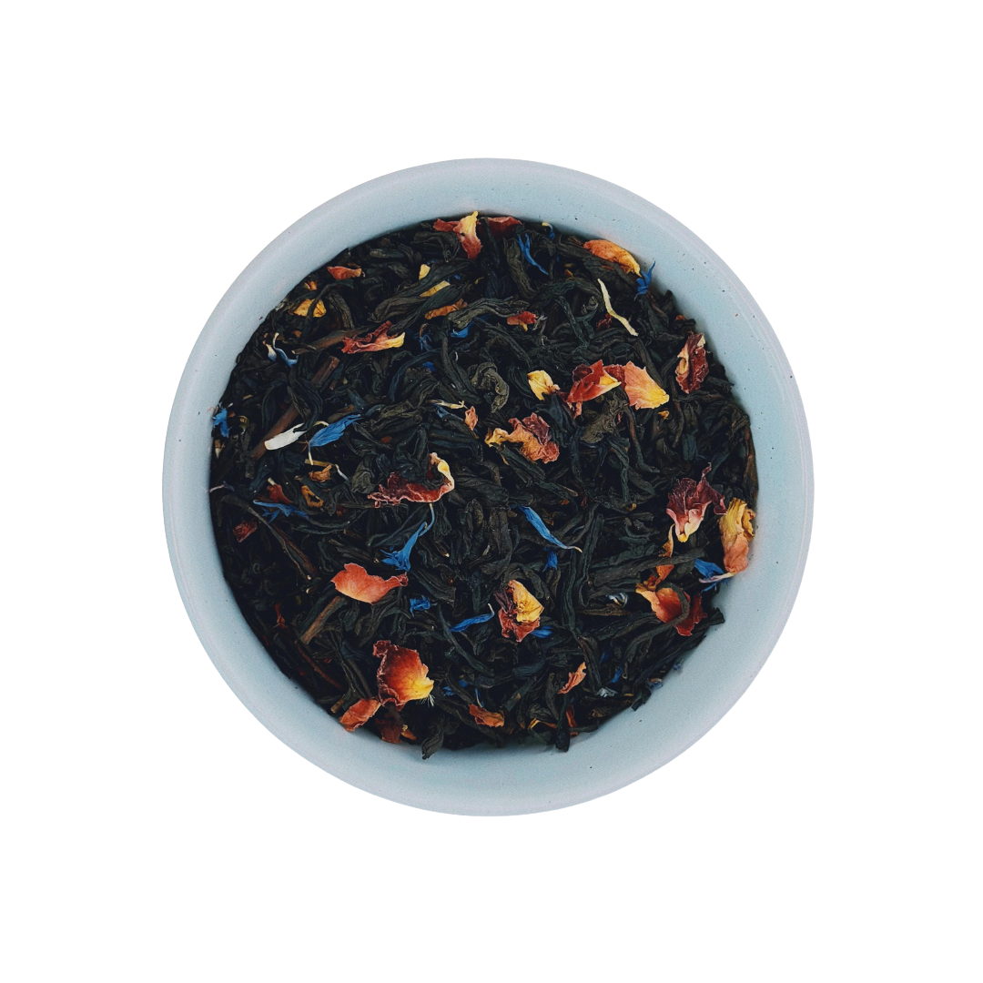 Loose Leaf Flavored Tea: Ceylon OP, Red Rose Petals, Cranberry Flavor, Peach Flavor, Orange Flavor, Cornflowers